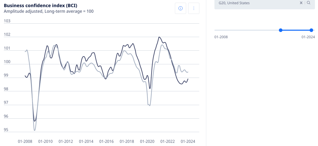 Organization for Economic Cooperation and Development (2025). Business Confidence Index (BCI) – G20 vs USA